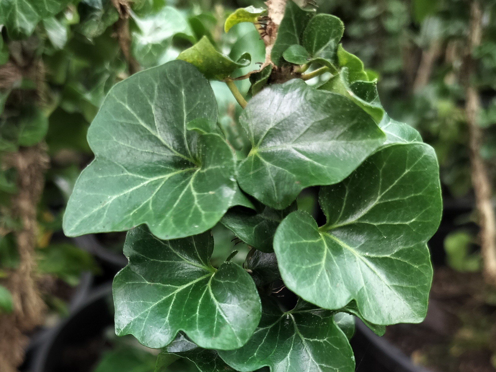 The ornamental ivy, Hedera helix ‘Erecta ‘, would thus be classified among the species Hedera helix, in the “Curiosities” category of the Pierot classification; it is an ivy in the juvenile stage. Finally, regarding the shape, we will say that it is a shrubby ivy because its stems are erect, straight, a bit like a shrub. They are also rather woody like those of shrubs. It can thus reach almost 1 meter high, without support or crampons.