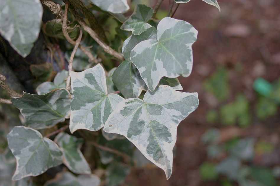 Ornamental ivy, Hedera helix ‘Glacier’, is a branchy species with vigorous shoots, which was among the first varieties of variegated ivy to be widely distributed.